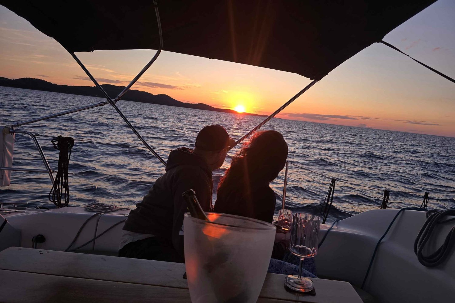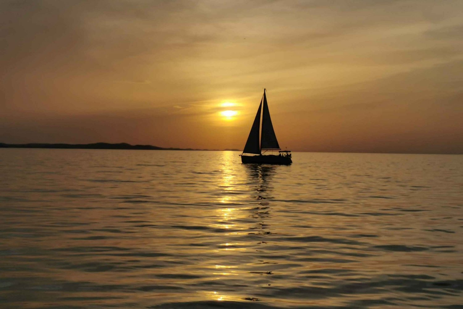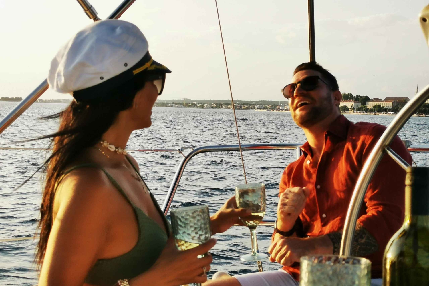 Exklusiv upplevelse tur för att njuta av den vackra Zadar solnedgången under seglen. Vi startar från marinan, gör en sväng runt gamla stan och seglar längs stadskanalen mot solnedgången, så att gästerna kan njuta av en tyst och avkopplande kväll under våra segel. Turen avslutas på samma plats i marinan, på gångavstånd från stadshamnen. Mycket populär för romantiska par och en perfekt present för årsdagar, frierier, födelsedagar, överraskningar. För ditt speciella tillfälle kan vi också ordna extrafunktioner som fotografering, tårta, extra flaskor champagne, fingermat. INKLUSIVE: skeppare, båt, flaska champagneIncludes