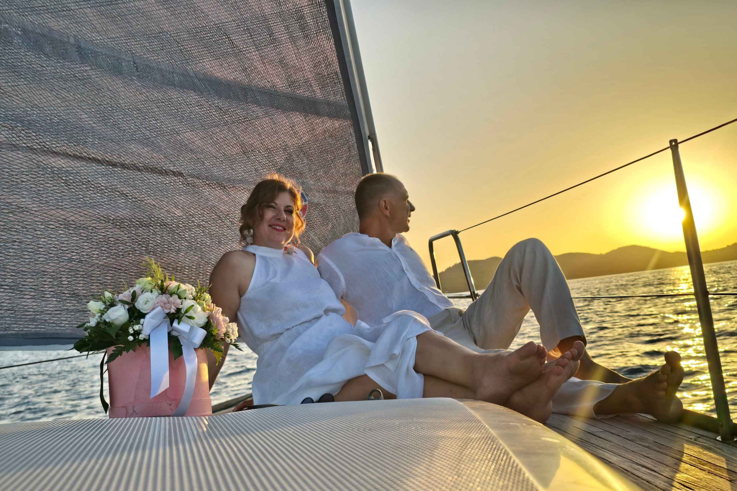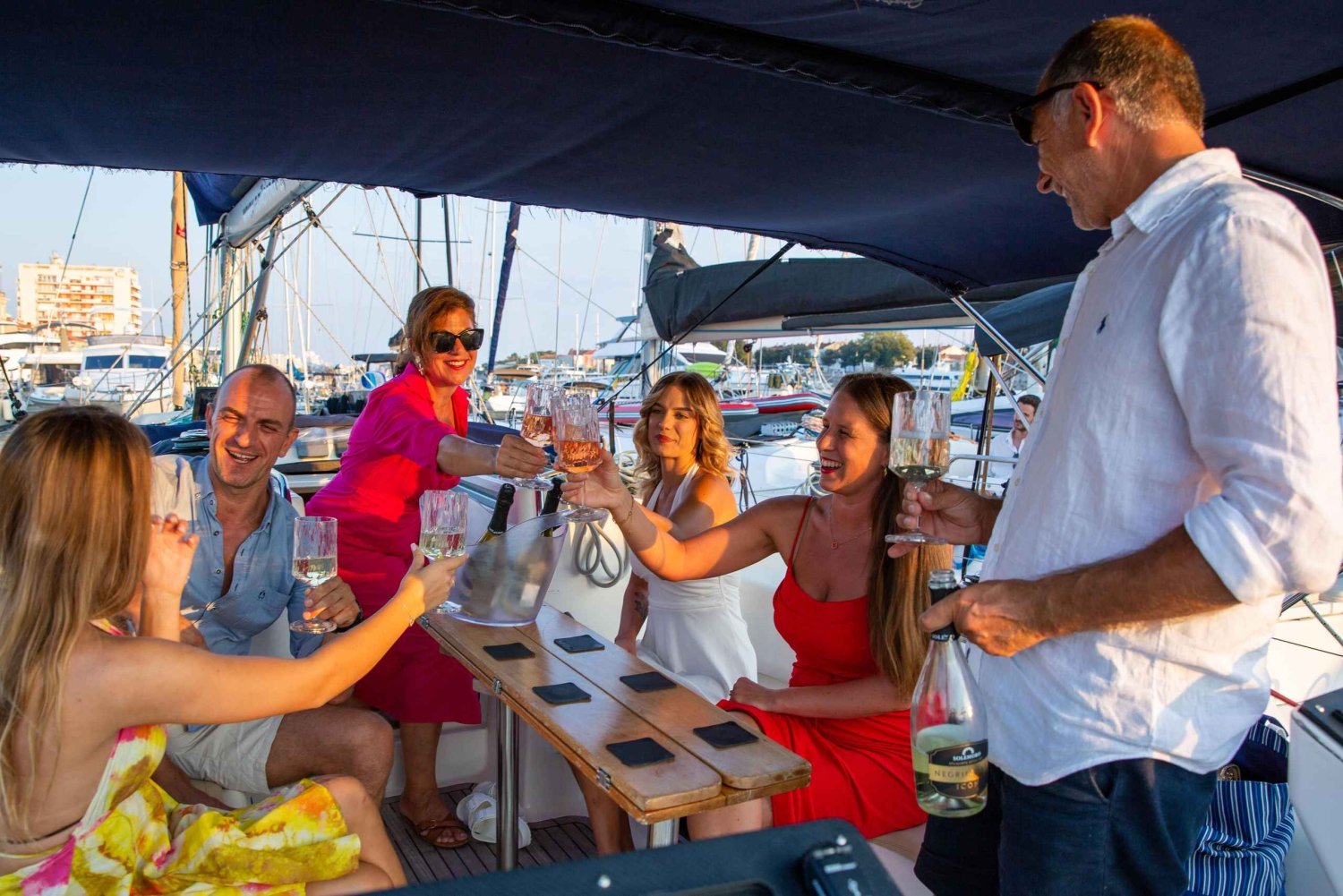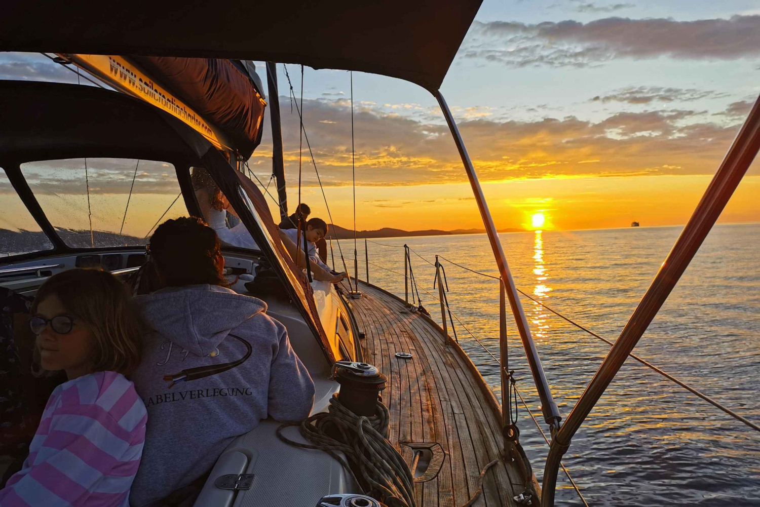 Exklusiv upplevelse tur för att njuta av den vackra Zadar solnedgången under seglen. Vi startar från marinan, gör en sväng runt gamla stan och seglar längs stadskanalen mot solnedgången, så att gästerna kan njuta av en tyst och avkopplande kväll under våra segel. Turen avslutas på samma plats i marinan, på gångavstånd från stadshamnen. Mycket populär för romantiska par och en perfekt present för årsdagar, frierier, födelsedagar, överraskningar. För ditt speciella tillfälle kan vi också ordna extrafunktioner som fotografering, tårta, extra flaskor champagne, fingermat. INKLUSIVE: skeppare, båt, flaska champagneIncludes