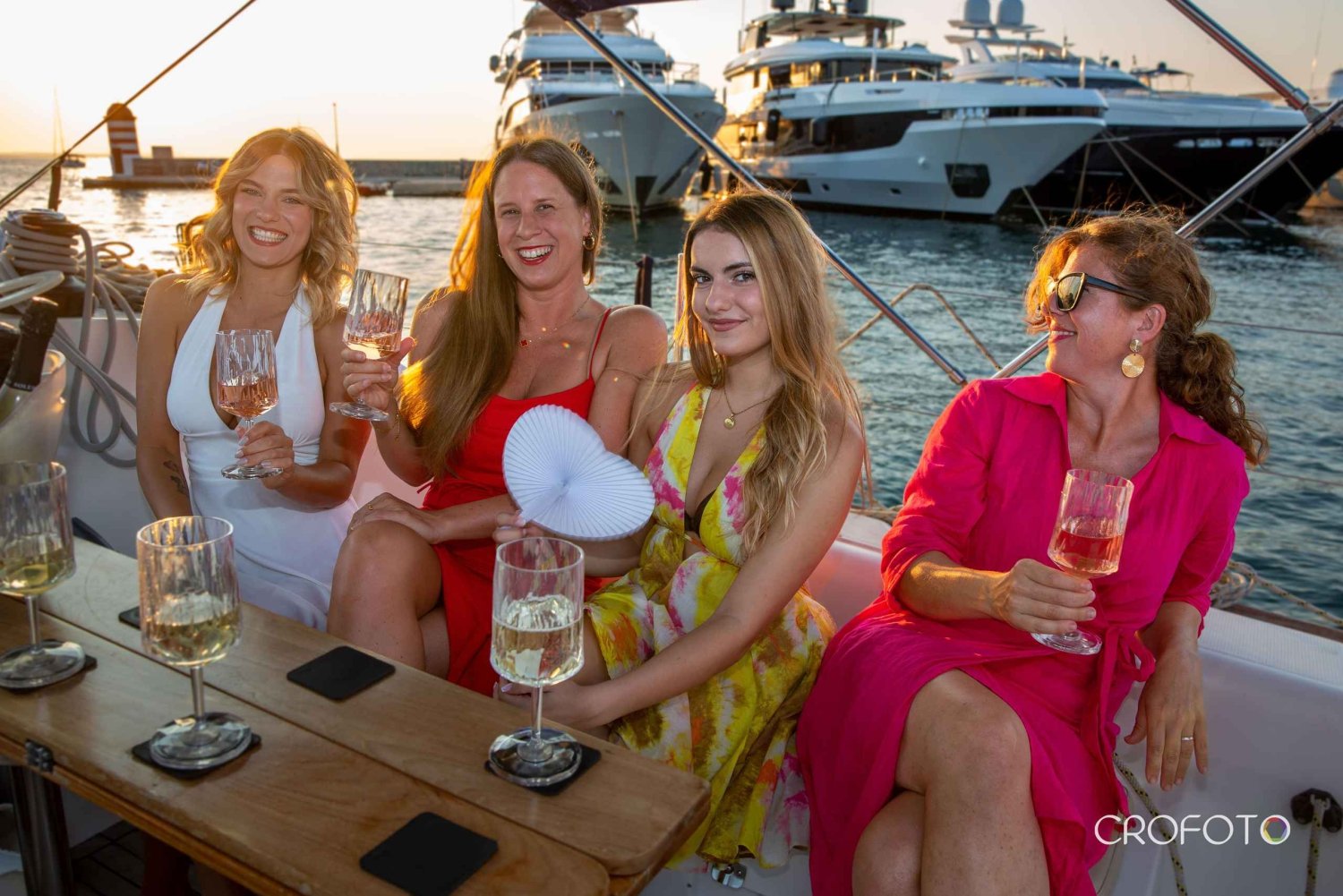 Elegant solnedgångskryssning under segel, stor yacht, full komfort