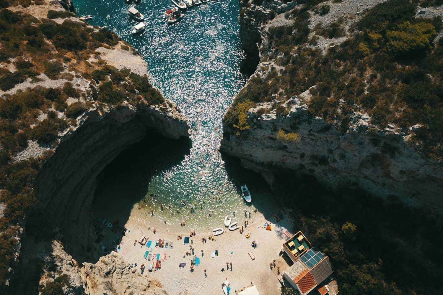 Tillbringa dagen med öluffning nära ön Vis. Få chansen att se de fascinerande Blå grottan och Gröna grottorna och simma vid några av Kroatiens mest fantastiska stränder.