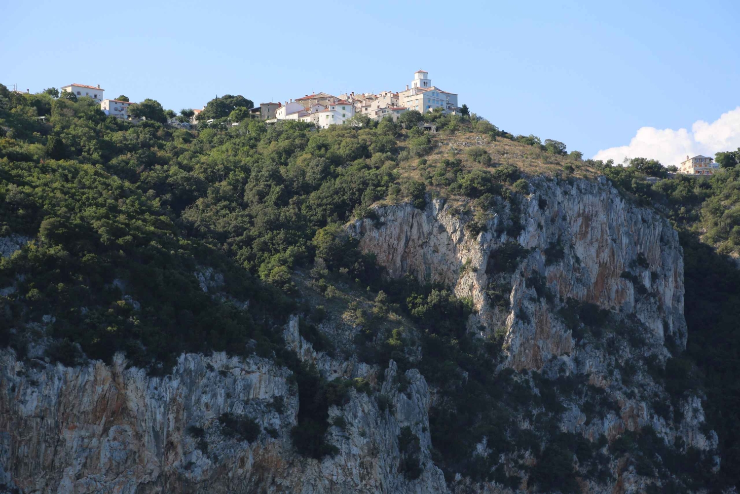 Turen avgår från Opatija eller Lovran och följer kusten mot den gamla staden Brseč. Själva resan är en del av upplevelsen, med öppen utsikt över havet och förbipasserande kustområden som Medveja, Kraj och Mošćenička Draga, som bäst avnjuts i ett lugnt och rofyllt tempo. Efter ungefär en och en halv timme på vattnet når båten Kap Šip, där branta klippor reser sig dramatiskt över havet. En dold blå grotta ligger inbäddad i en liten vik nedanför och bjuder in gästerna att hoppa i och simma där inne. Båten stannar här i cirka 30 minuter, vilket ger dig tid att utforska grottan, som endast kan nås genom att simma. Även om den är liten och bara cirka 3 meter djup fylls den med glödande blått ljus när solljuset passerar genom vattnet, vilket skapar en riktigt speciell atmosfär. Grottans naturliga akustik gör ofta detta stopp till ett roligt och minnesvärt ögonblick. En kort fem minuters resa leder sedan till Peć Beach, som ligger under de högsta klipporna nära Brseč. Här kan du njuta av ytterligare en 30-minuters paus för att simma, flyta eller bara koppla av i en lugn, avskild vik. Återresan till Opatija eller Lovran är lugn och naturskön, och rundar av resan med vidsträckta Adriatiska vyer och en känsla av att ha upptäckt något lite utanför det vanliga.Includes
