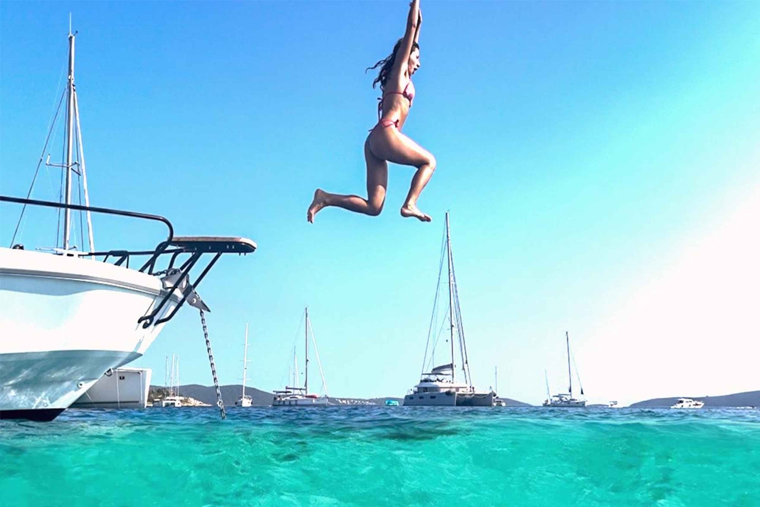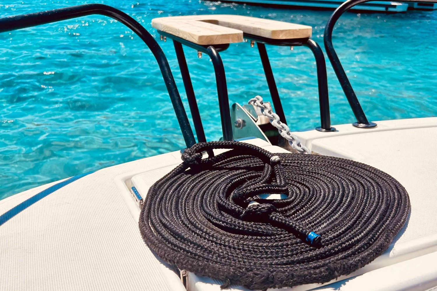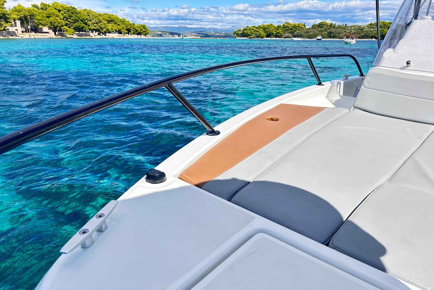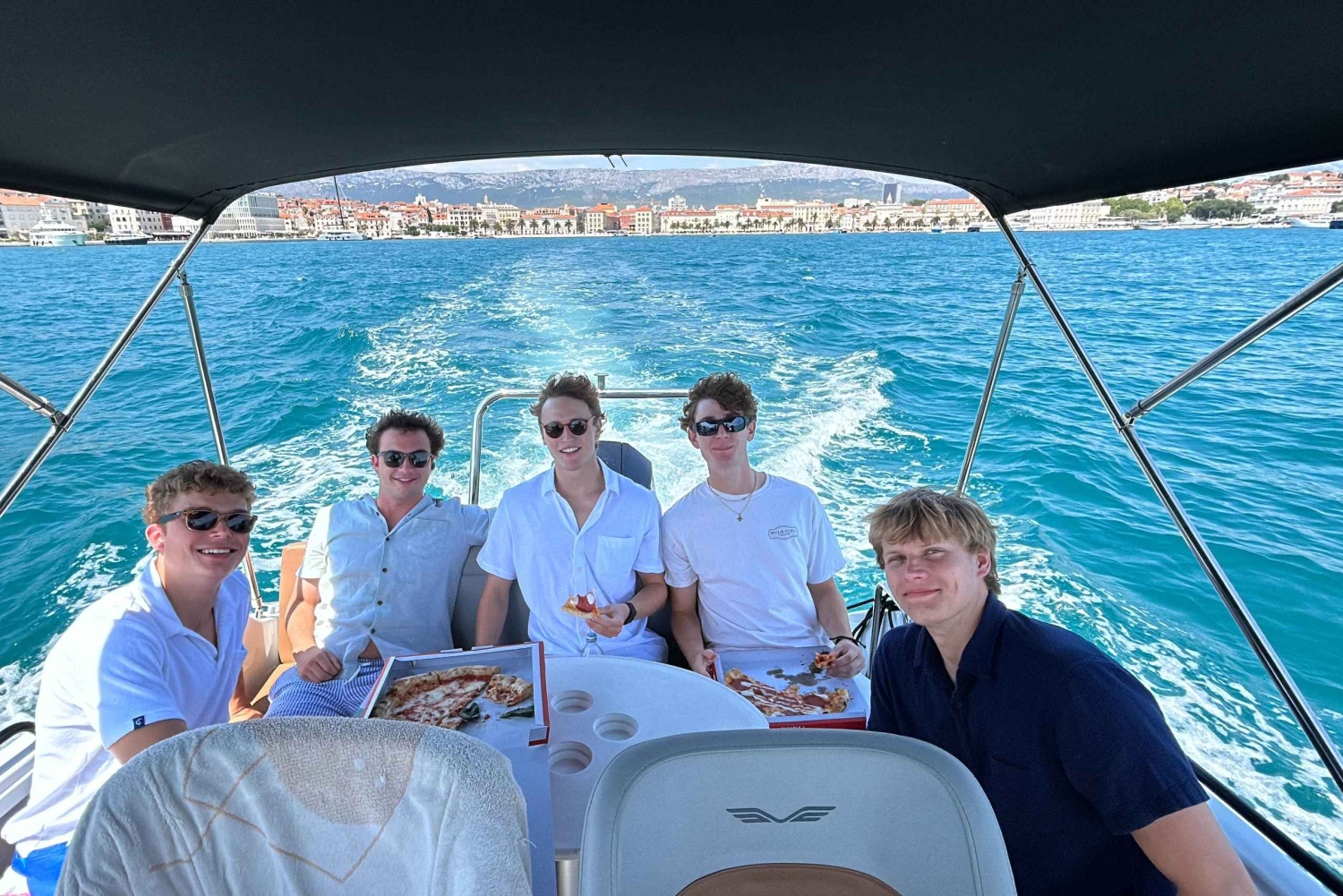 Det finns två möjliga upphämtningsplatser för din halvdagsutflykt: Split strandpromenad på västkusten eller Trogir fyr. Bränsle och skeppare ingår i priset! Vi börjar med en panoramatur i staden Trogir, som är ett unikt UNESCO-världsarv. Efter att ha passerat Trogir är nästa stopp min hemliga plats. Denna plats är älskad av äventyrare och här kan du dyka och utforska, sola och simma. Den kommer att ta andan ur dig. Nästa stopp är den berömda 'Blå lagunen', känd för sina färger och sitt klara hav som garanterat kommer att imponera på dig. Det kommer också att finnas cocktails tillgängliga för 10 € på plats. Vårt sista stopp blir en annan av mina dolda pärlor. En fantastisk plats som alla vill återvända till, en plats för hälsa och avkoppling mot slutet av denna upplevelse. Avlämningsplatsen är samma som upphämtningsplatsen. Vid avbokning på grund av dåliga väderförhållanden kan turen ombokas eller du kan få full återbetalning. Ansvarsfriskrivning: Turen rekommenderas inte för gravida kvinnor, personer med ryggproblem och barn under 3 år. Observera att bränsle och skeppare ingår i priset för denna tur, så det kan inte korrigeras eller ändras... denna tur inkluderar inte lunch, och det finns inga lunchstopp! Bränsle och skeppare – ingår i priset!Includes