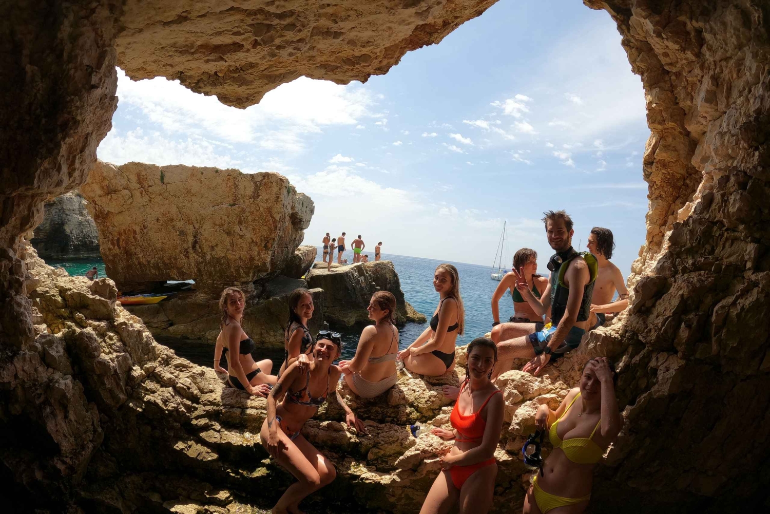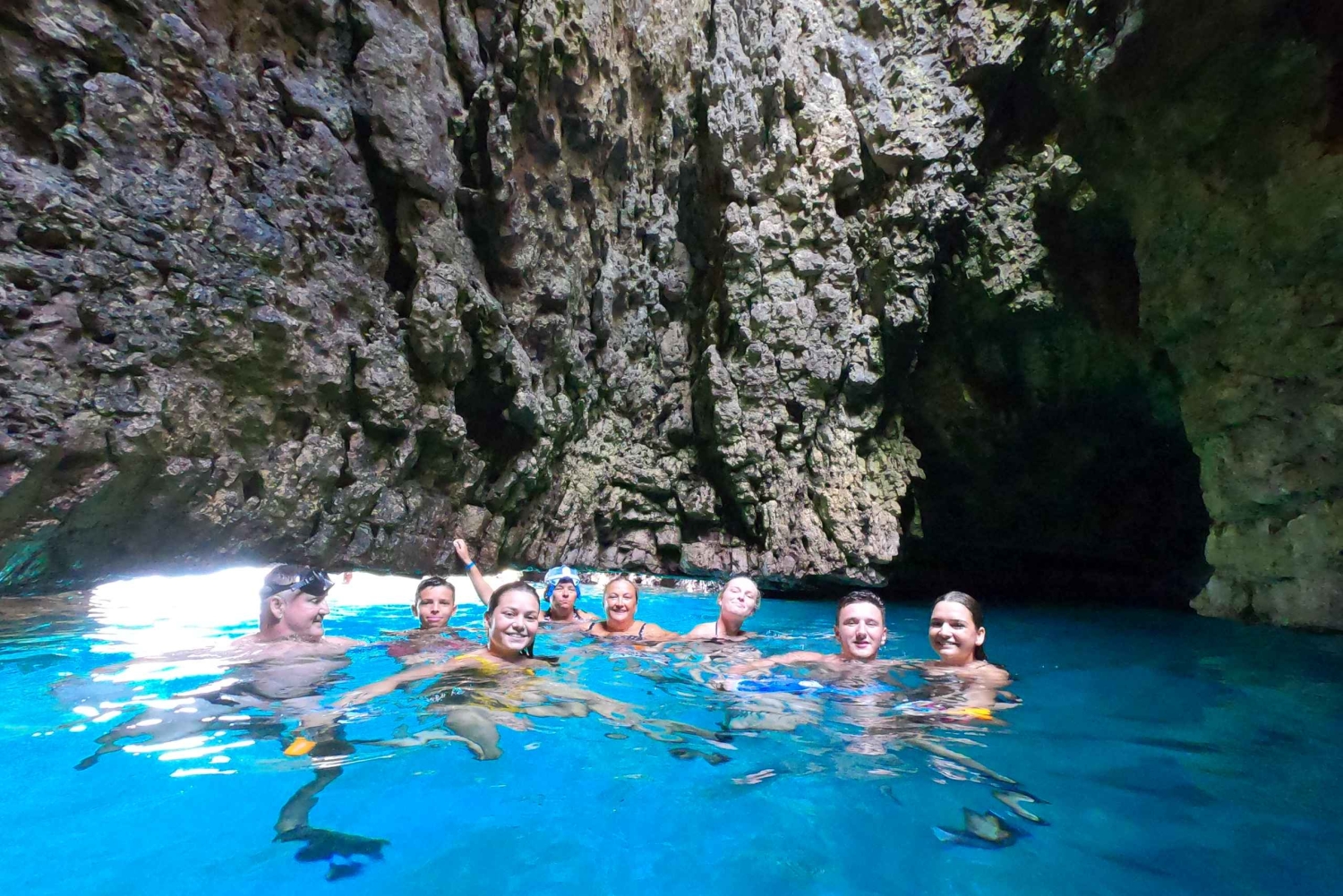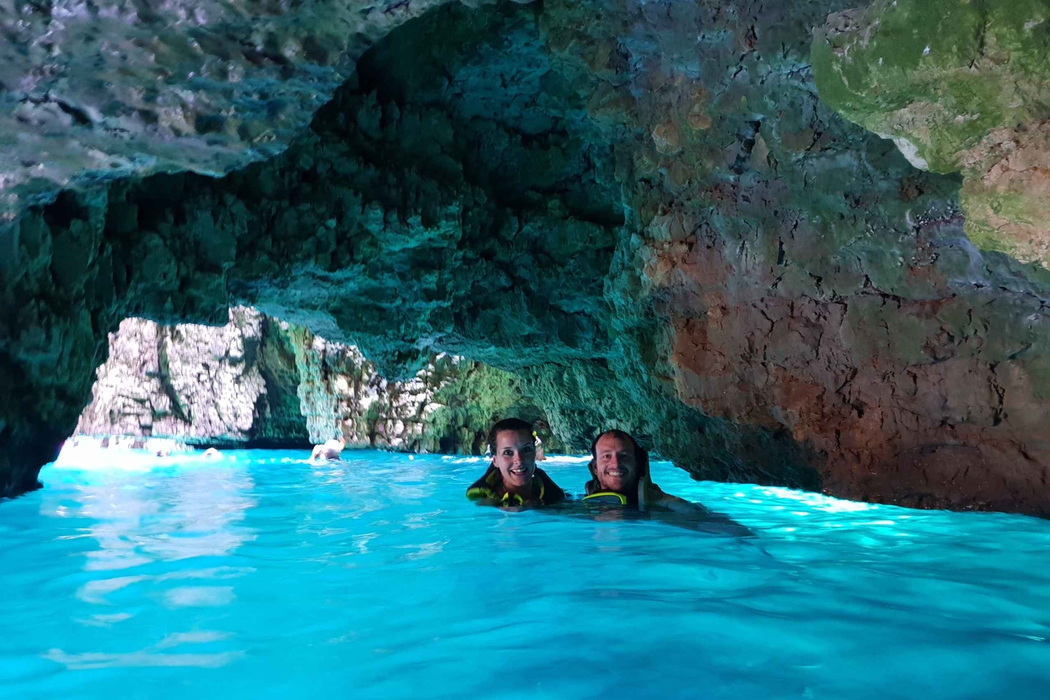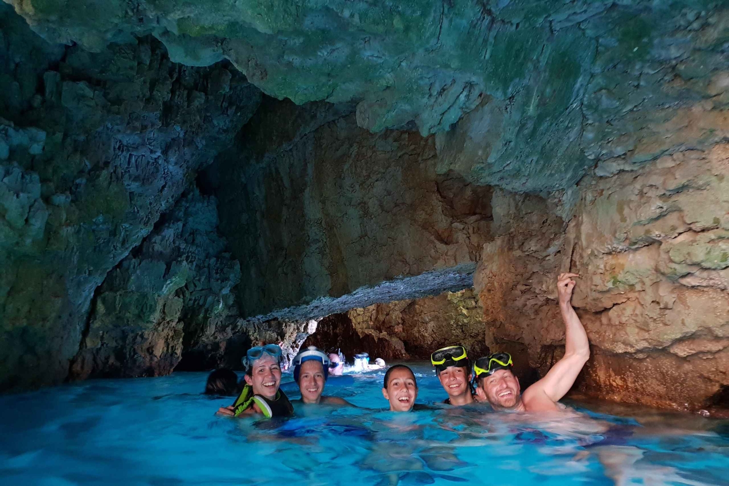 - Fördjupa dig i naturen när du snorklar i en kristallblå grotta under en klippa