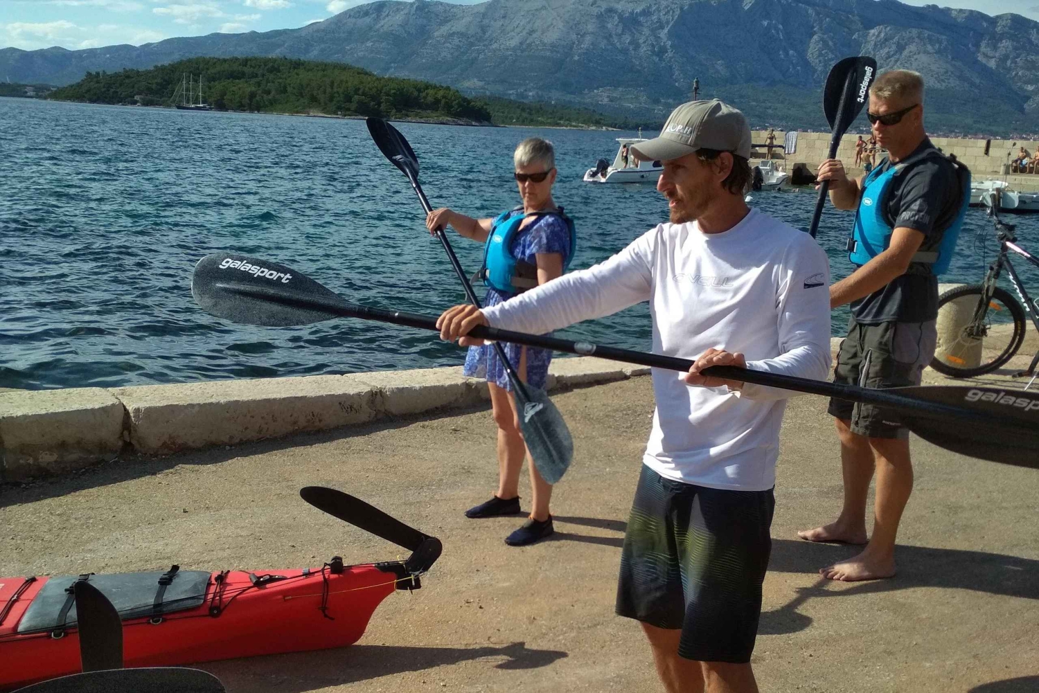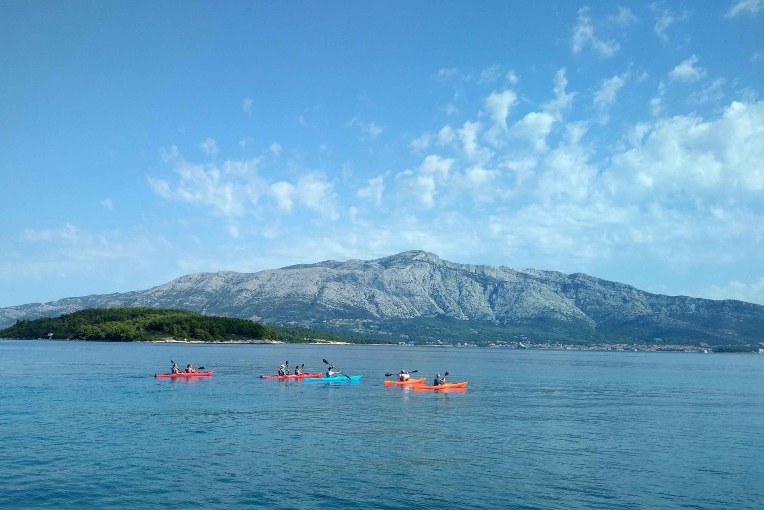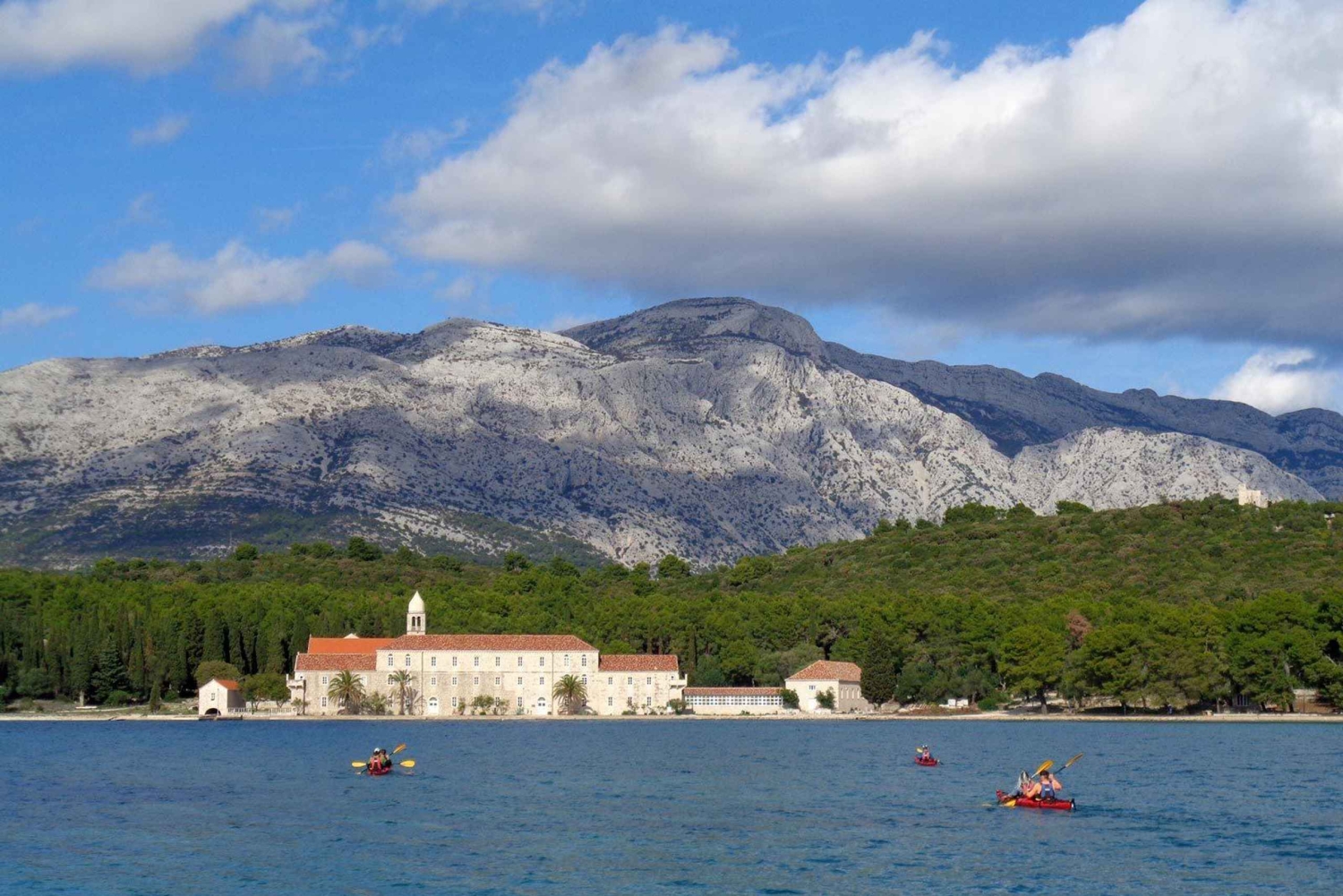 En kajakpaddling på kvällen med start från Tatinja Bay i Lumbarda. Efter att ha träffat din guide och genomfört en 20 minuters säkerhetsgenomgång och träning i havet börjar du med turen. Ni besöker en ö som är känd för sin stenbrottshistoria och en annan som är hem till ett vackert kloster från 1300-talet med vackra vilda hjortar som strövar omkring. Efter det paddlar du till den vackraste solnedgångsplatsen i området för att njuta av den lugnande röda solen som faller ner i havet. Medan du njuter av solnedgången kan du njuta av något fantastiskt hemlagat vitt vin som heter GRK som bara finns i Lumbarda-regionen, medan du snackar på hemlagade canape-smörgåsar komplett med ost och salt ansjovis.Includes