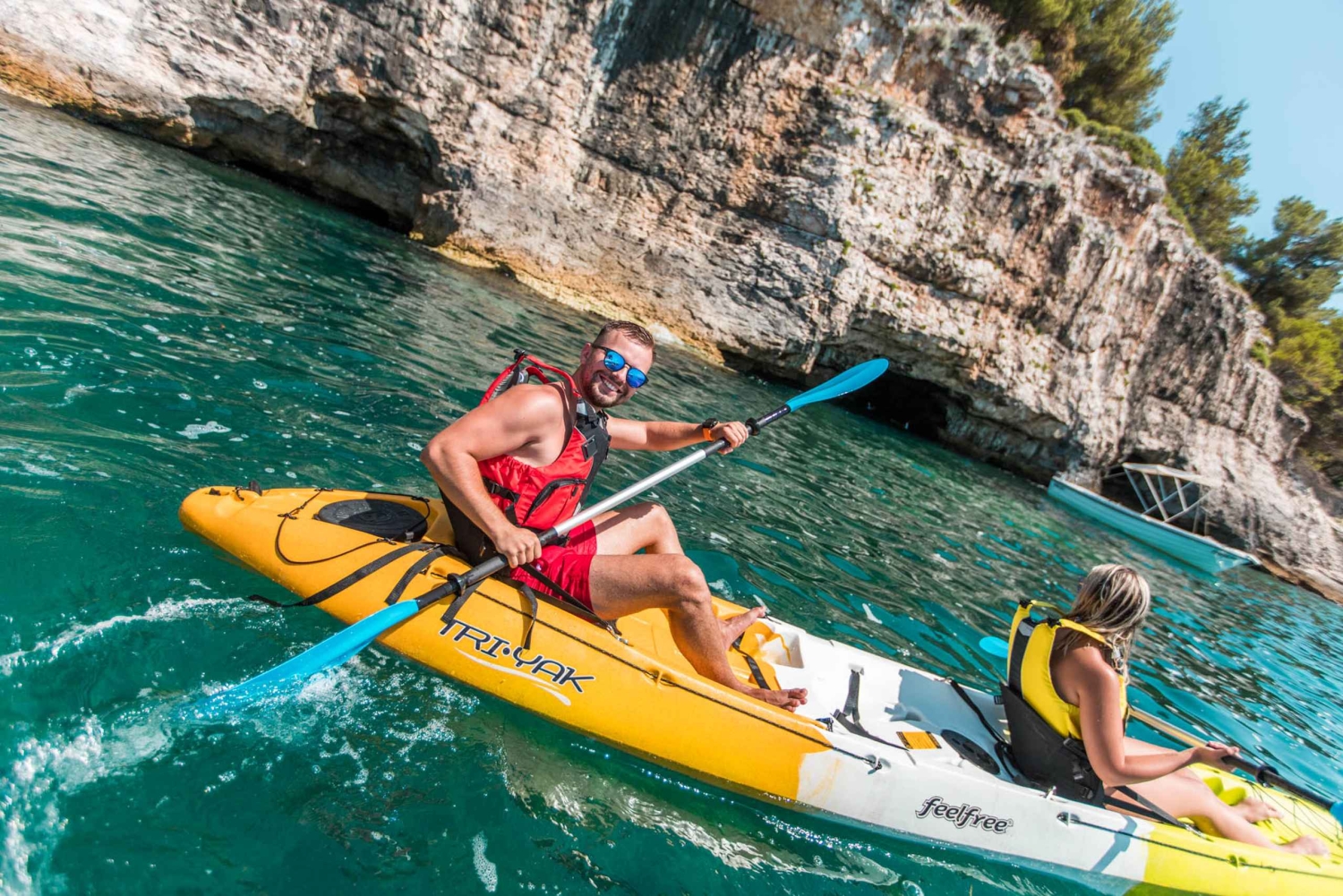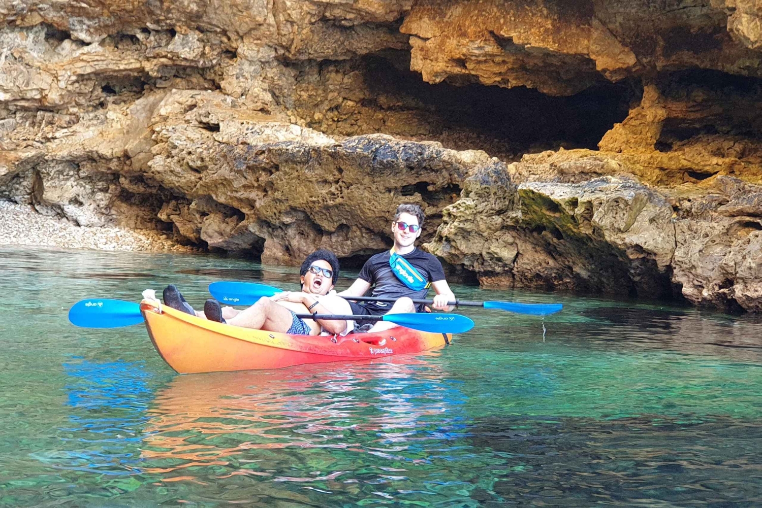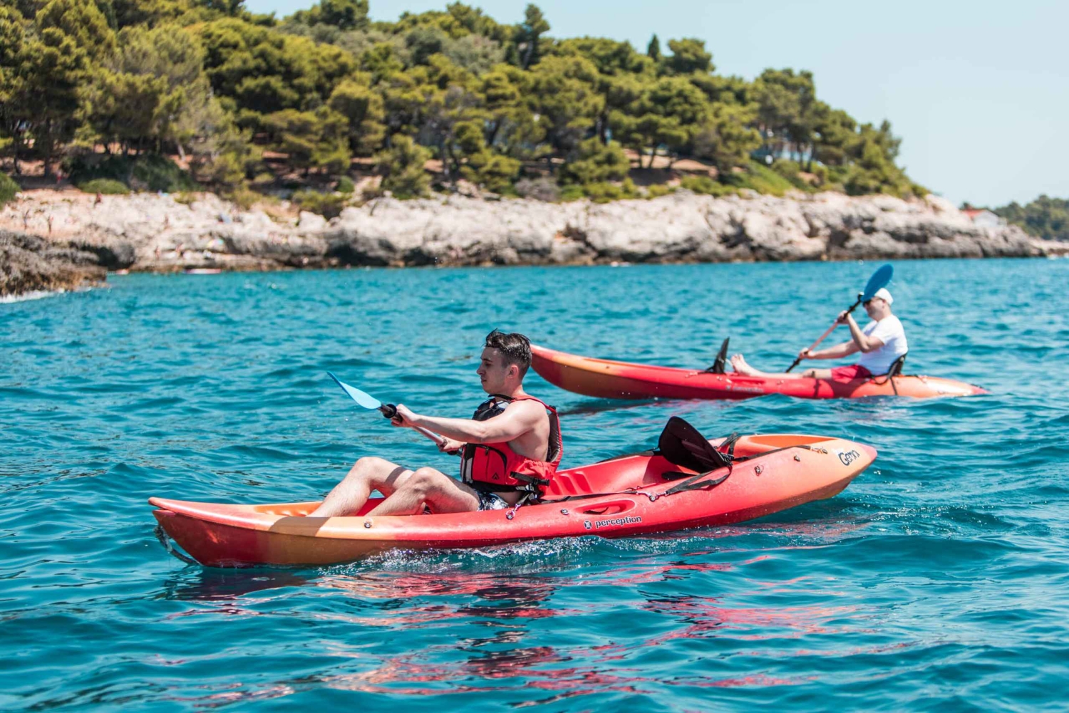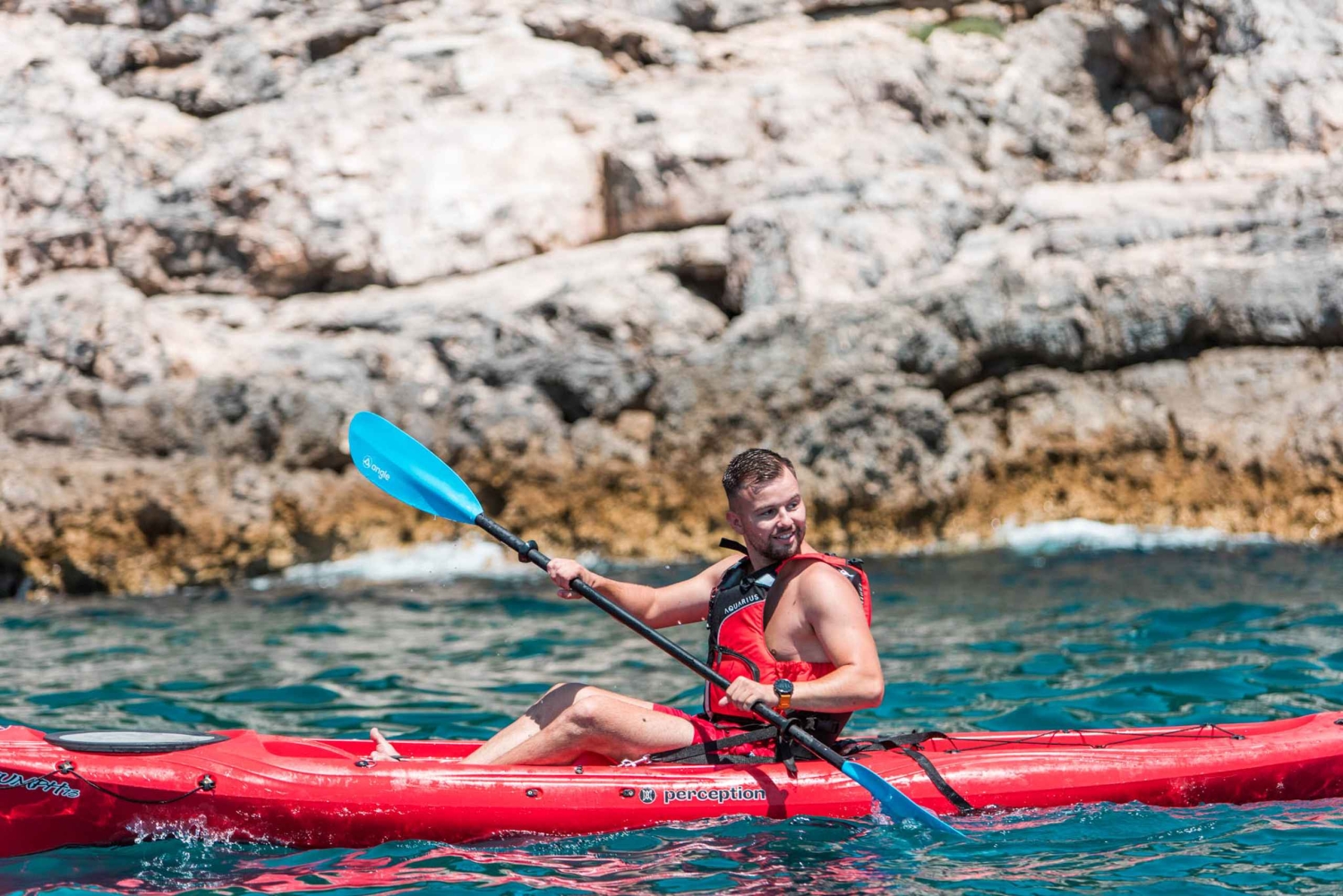 Följ med på en kajaktur från Vinkurans hamn och utforska en fascinerande grotta, kanjon och den pittoreska ön Fratarski. Simma, snorkla och fördjupa dig i den naturliga skönheten på denna oförglömliga plats.