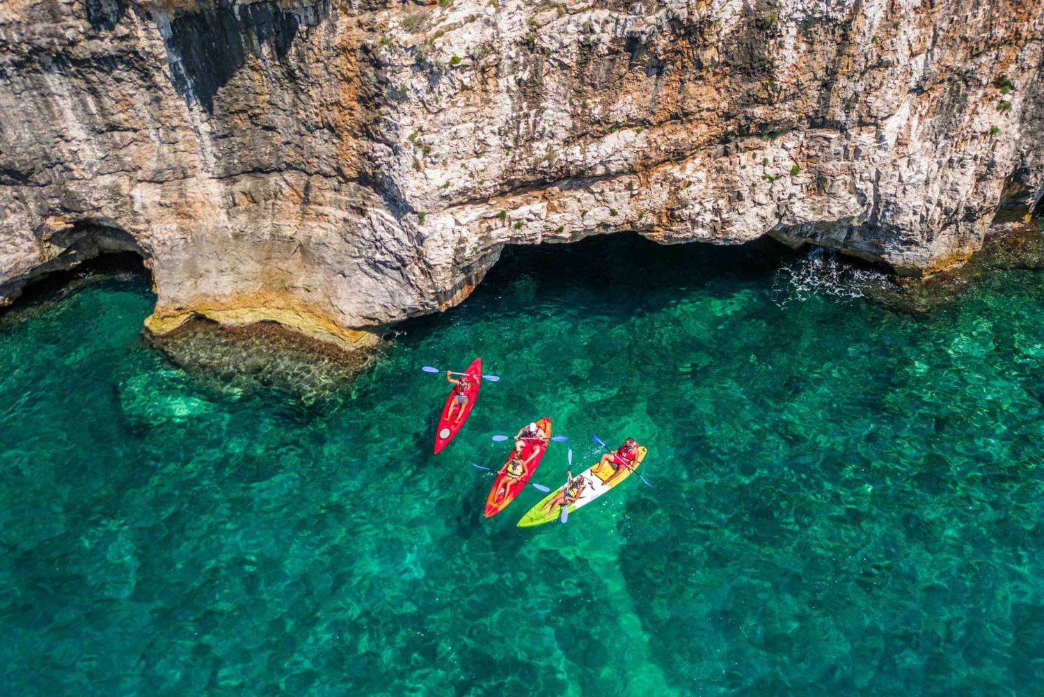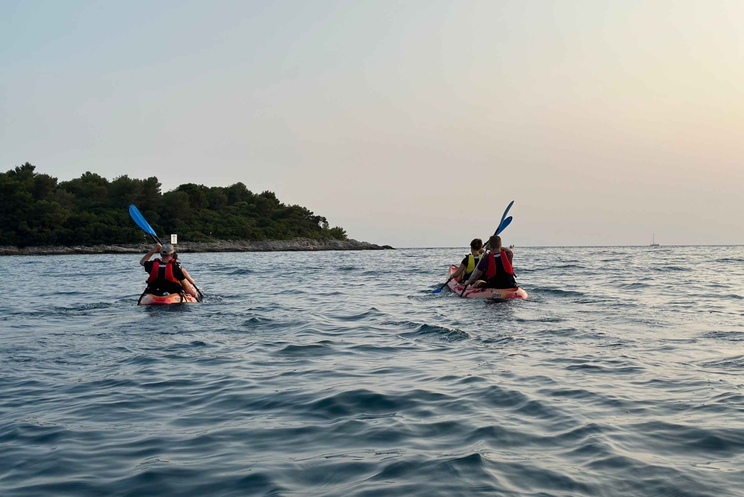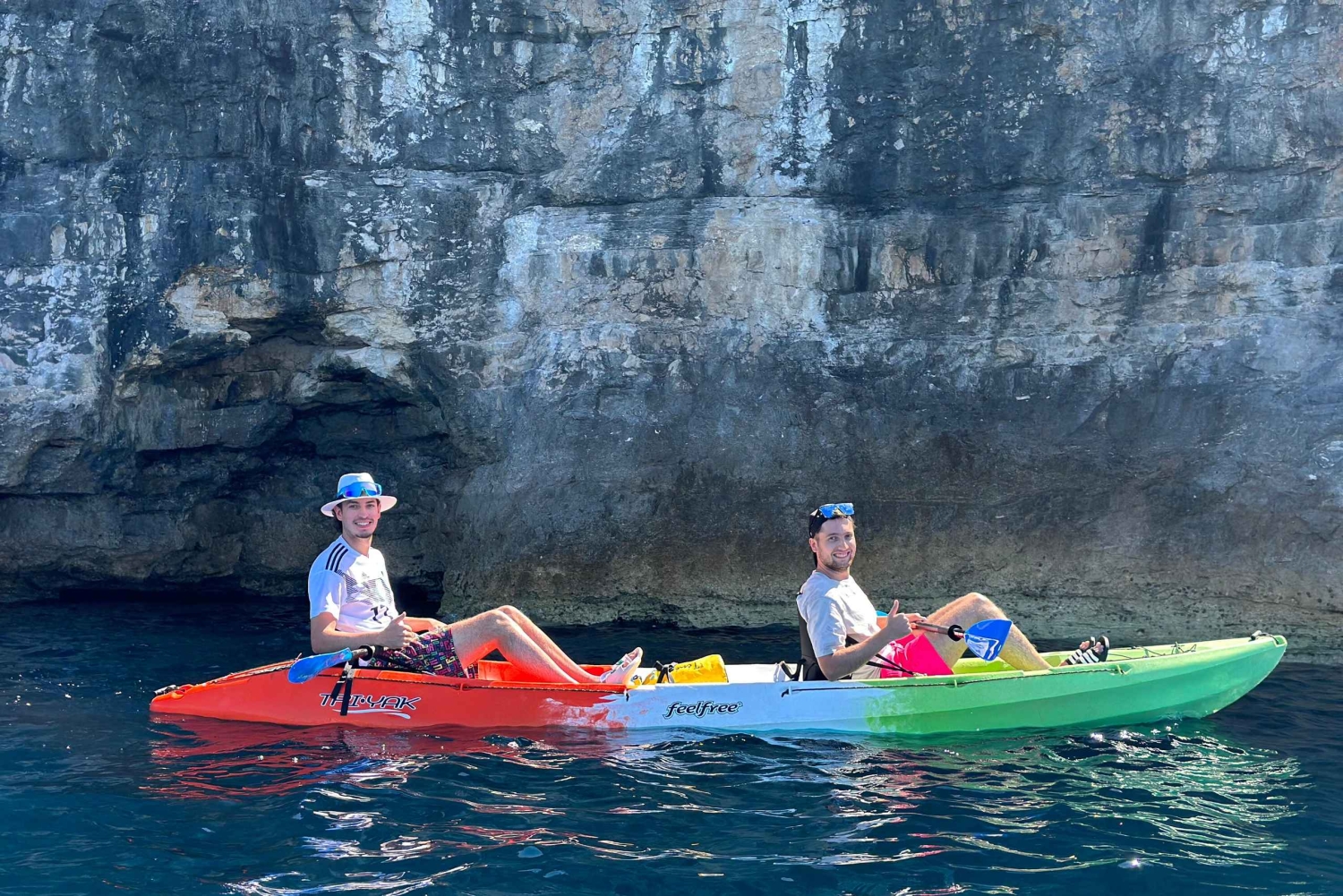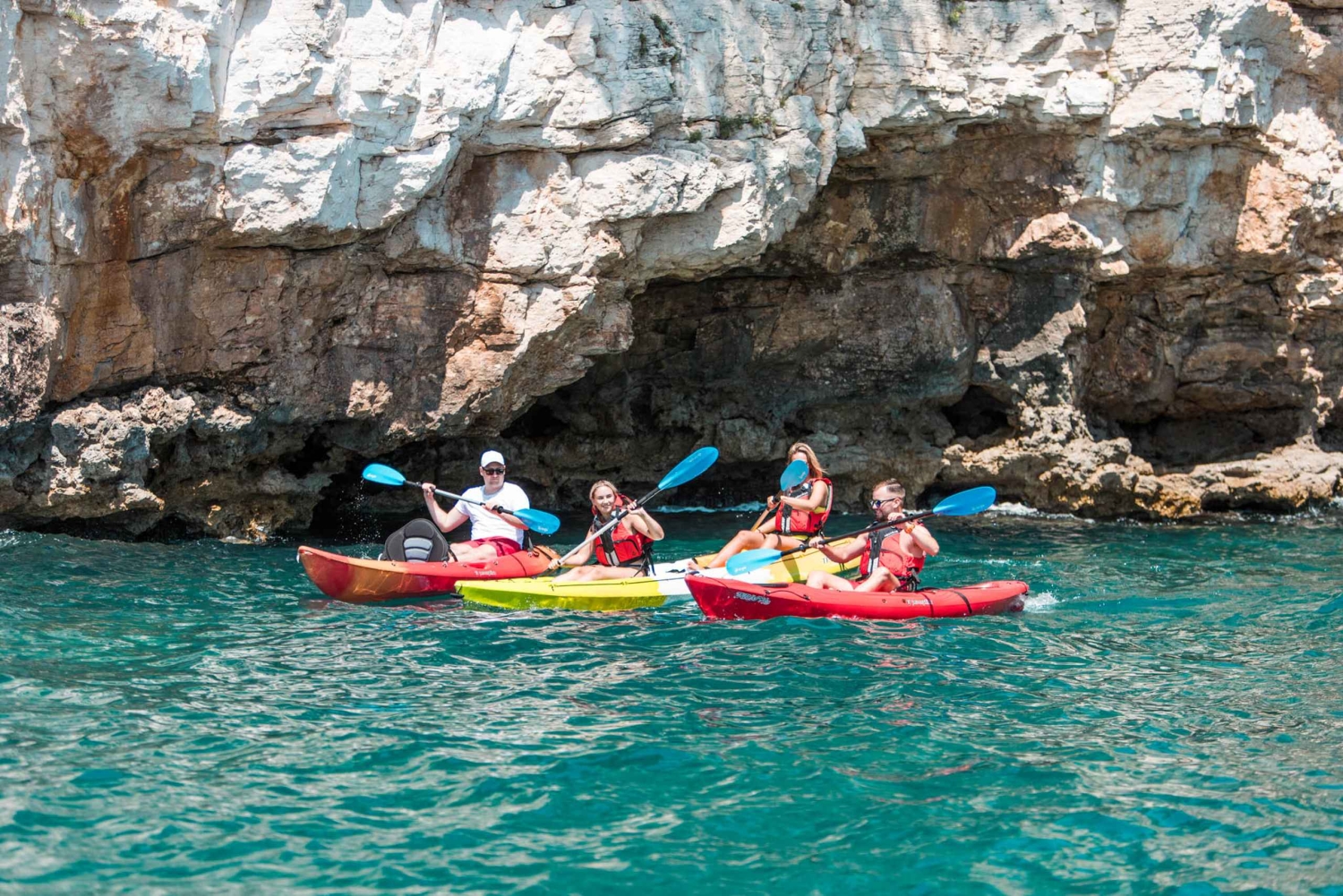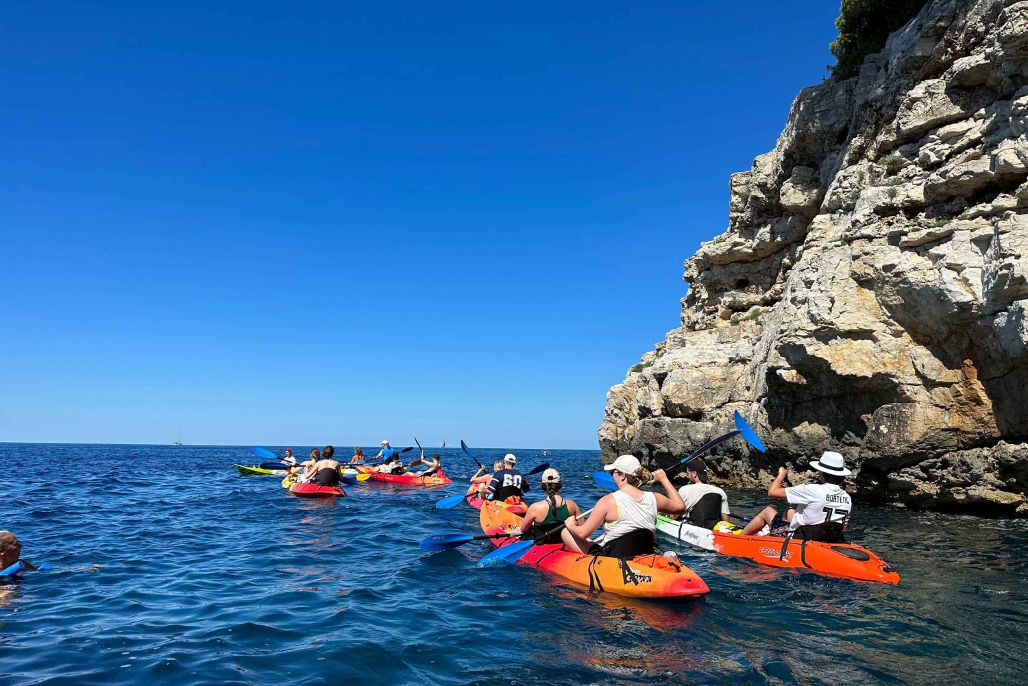 Följ med på en kajaktur från Vinkurans hamn och utforska en fascinerande grotta, kanjon och den pittoreska ön Fratarski. Simma, snorkla och fördjupa dig i den naturliga skönheten på denna oförglömliga plats.