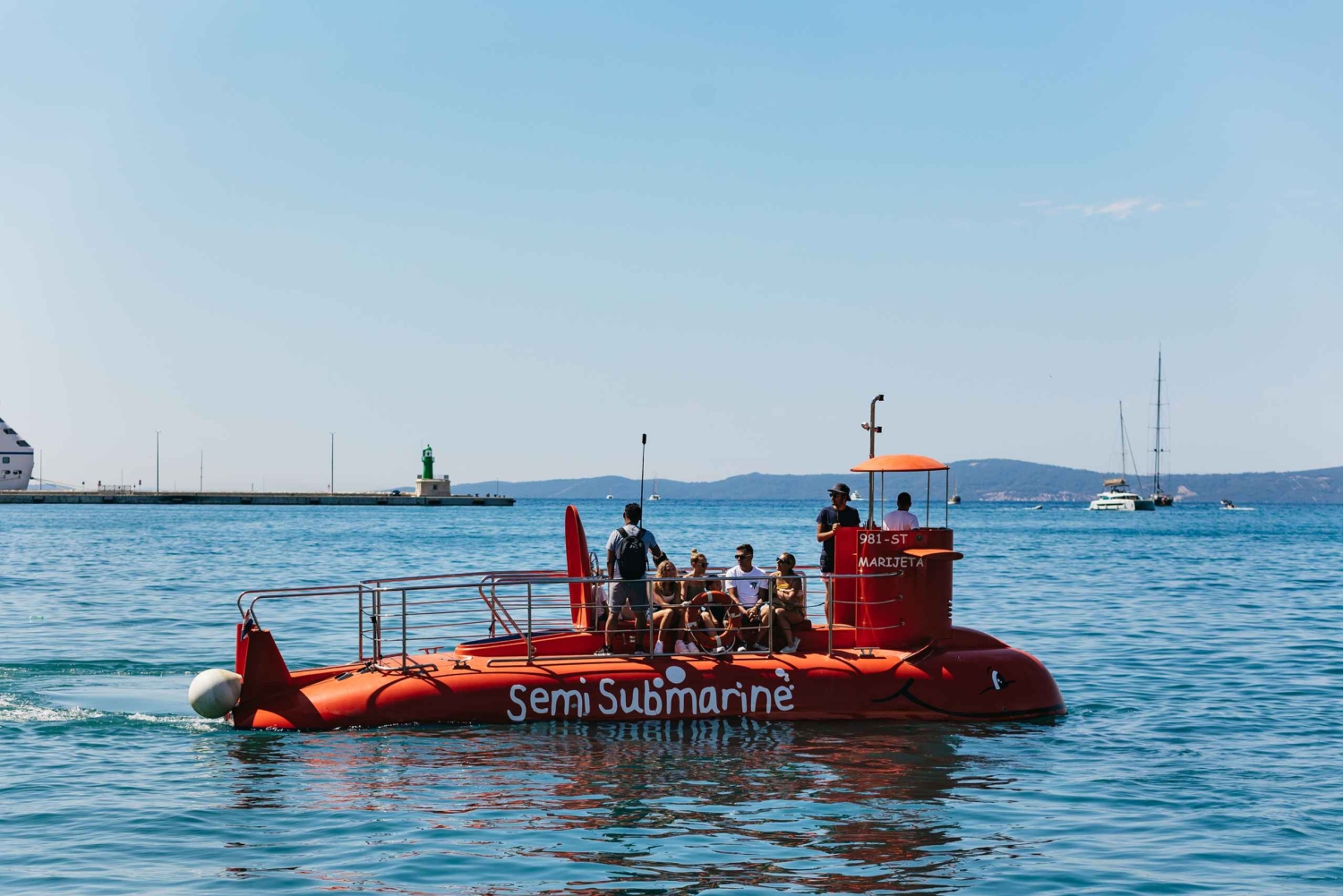 Halvubåten 'Marijeta' avgår från Rivas strandpromenad, som ligger mitt i Split hamn. Den här unika båten erbjuder en trevlig och säker tur och är idealisk för både vuxna och barn i alla åldrar. Fartyget är alltid ovanför havsytan medan skrovet med sitt undervattensobservatorium ligger 1,5 meter under ytan. Genom ditt egna observationsfönster kan du beundra det överväldigade undervattenlivet flyta förbi. Du kan när som helst lämna hytten och gå upp på däck för att njuta av den spektakulära utsikten över det historiska området i Split med Diocletianus palats.Includes