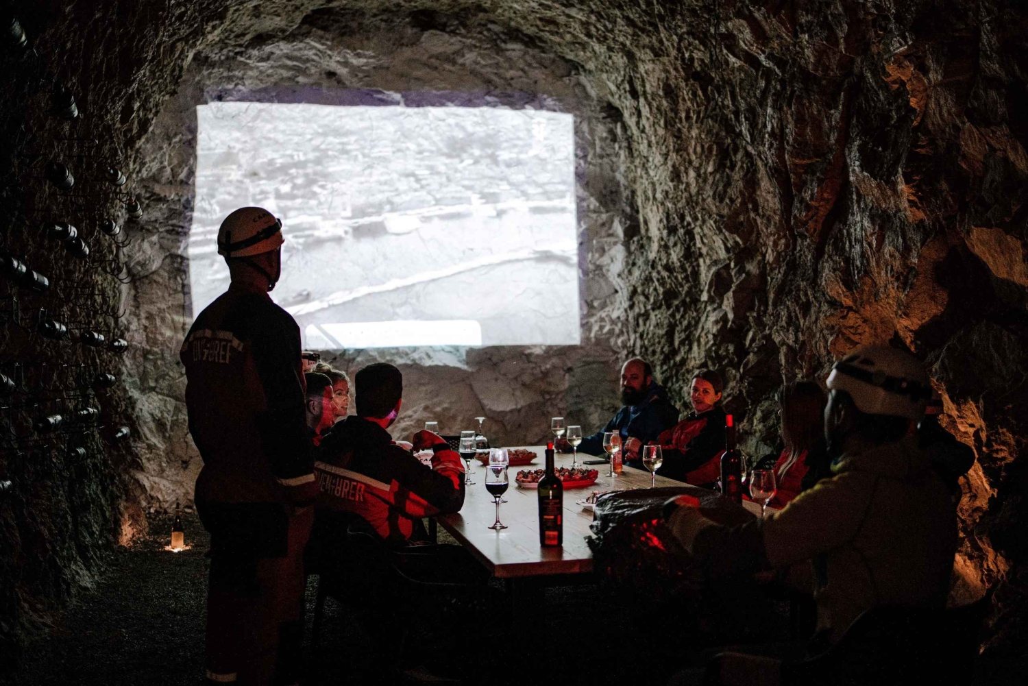 Under den här turen besöker vi den 550 meter långa underjordiska fästningen från andra världskriget och erbjuder dig möjlighet att prova på abseiling - att ta sig nerför en klippvägg med ett rep. Fästningen förblev ofullbordad och är därför en unik kombination av arkitektur skapad av både människa och natur. Och det är inte allt. Fram till för några år sedan var denna byggnad bortglömd och gömd. Det var först nyligen som den upptäcktes, ställdes i ordning och utrustades för besökare. Beroende på svårighetsgraden på den rappellering du vill prova och känner dig bekväm med, erbjuder vi denna tur i 2 versioner: Abseil och Abseil Plus. Abseil Inkluderat är en rundtur i den underjordiska fästningen San Giovanni och rappellering på ett och/eller två sätt med olika svårighetsgrad. Den enklare varianten innebär att man går nedför en vertikal klippa. Därefter kan nedstigningen upprepas i en något svårare variant - med ett vertikalt hopp. Båda metoderna är lämpliga för nybörjare utan tidigare erfarenhet och utförs med hjälp och backup av våra instruktörer. Vi börjar turen med en introduktion till rappelleringstekniken och bekantar oss med utrustningen. Detta följs av en övning på en horisontell yta och en demonstration av nedstigning. Efter att ha utrustat oss själva tar vi oss ner för den vertikala naturliga klippan och går in i de höga underjordiska rummen som är byggda i betong. Vi börjar vår promenad genom fortet ackompanjerade av specialeffekter. Vi avslutar turerna med att umgås och prata med ett glas vin. VI TAR DIG TILL DJUPA TURERIncludes